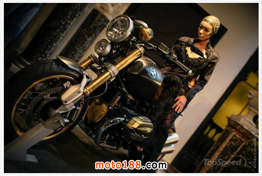 哥特式風格的妝容和服飾,奢華精美的金箔R nineT,魅惑的黑加上華麗的暗金充滿著貴族的氣息,復古迷人的色調讓人有瞬間穿越中世紀的感覺。