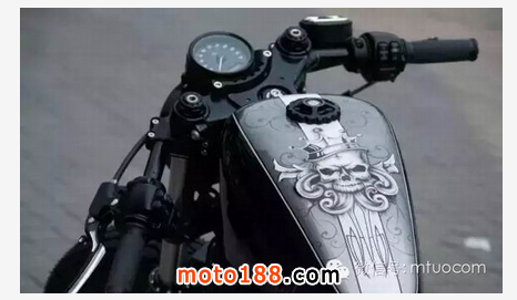 為達到“空腹”效果,技師對固定在油箱下方的大捆電路線束重新排線隱藏至車架內部,包括將點火高壓包移位至引擎外側 、拆除機械點火鑰匙開關改為芯片感應無鑰匙啟動系統等一系列工序。使得這顆Evolution1200ccV缸引擎得以留出充足空間展現與生俱來的暴力美學。干凈利落、簡約而不簡單正是復古改裝的精髓所在。