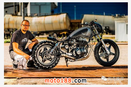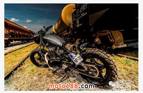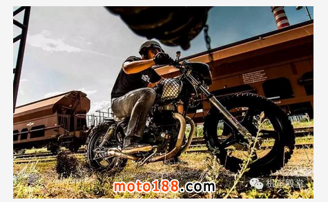 核心提示: 如果每個人都是相同的風格,世界將會是一個非常無聊的狀態 改裝縮短的MX車把,可以看見大燈是哈雷車上的 遠觀此車真像是