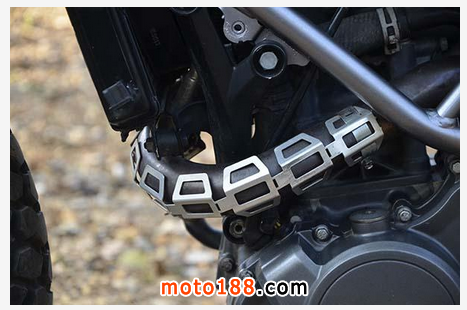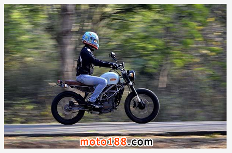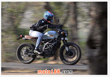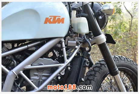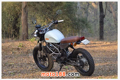 一個(gè)來自印度西岸城市孟買的小型改裝公司 Keyne Wilson,以 KTM Duke 200 為基礎(chǔ)制作了了一部名為 Street Tracker 的作品。該作品耗時(shí) 45 天,它保留了諸如發(fā)動(dòng)機(jī)、車架、懸掛系統(tǒng)等等 Duke 200 大部分原本的機(jī)械元素,但拆掉了前擋泥板,換上了大顆粒狀的前18后17英寸直徑的半越野前后輪胎、有更高的離地間隙,整部車從原本的裸體跑車造型、變成了眼前的 “ 鄉(xiāng)村穿梭 ” 風(fēng)格。