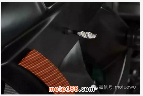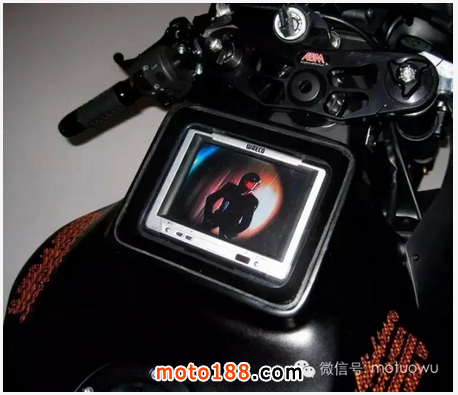 加滿油才195公斤,理想條件下最高車速能超過320km/h。為此,PUIG的風擋還專門放在風洞里吹過,絕非路邊攤隨便揀來的。所謂理想條件包括把頭埋在風擋的后面,這個位置要看到后視鏡可是無比艱難,Warm Up于是在油箱上設了一片WAECO顯示器——用攝像頭取代后視鏡還能進一步降低風阻。類似的小心眼還包括Kellermann的Micro 1000 DF后燈組,不亮的時候幾乎注意不到它的存在。頭燈倒很容易引起注意,遠近光現在換成氙氣獨眼,下面還墊了一排LED日間燈,非常明亮。