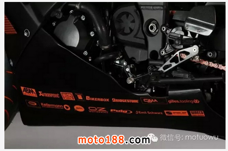 川崎賽車工廠Bikerbox負責調理Stormbringer的一升四缸機,為此動力大師Sepp Buchner沒少下功夫,包括把燃燒室磨出新的形狀。Akrapovic的德國代理Jamparts出面定制了WSBK級別的排氣管,包括能攝住尾隨者魂魄的三角形碳纖維消聲器。轉速達到13700rpm時燃油會切斷,差不多也是在這里能輸出220峰值馬力。是的,并非把gilles tooling定做的油門擰到底就一定能召喚出全力,有60馬力隱藏在180km/h之后,并且只能閃現一小會兒。能實現這一點全憑Bikerbox的可編程發動機管理系統,牽引力控制有10級可調,包括賽車級的起跑控制。當然,要實現這種起跑還得仰仗堅如磐石的離合器。