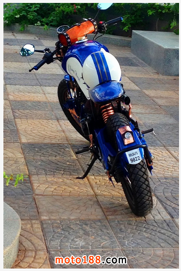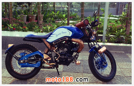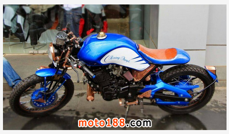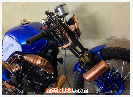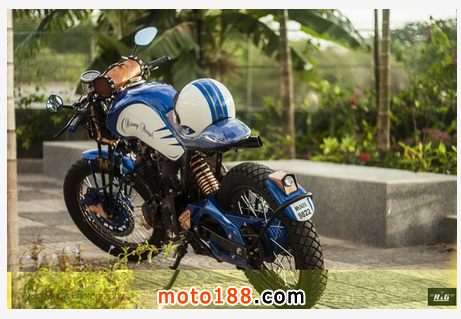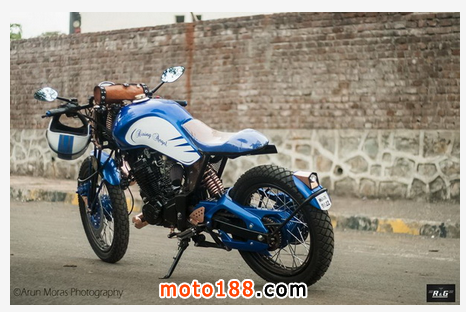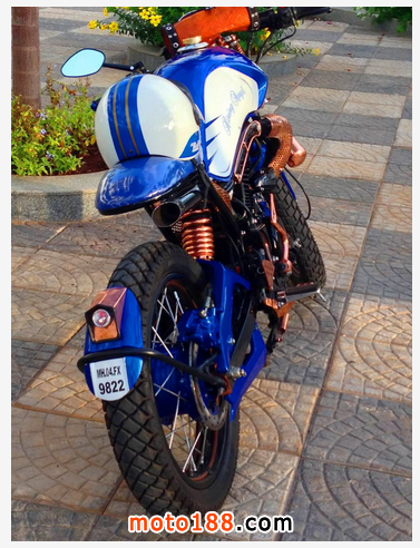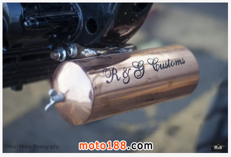 來自印度孟買的定制公司 R & G 作品 Rising Angel “ 天使瑞星 ”,以一部當?shù)厣a(chǎn)的 Yamaha FZ16 為基礎(chǔ)制作而成,但除了發(fā)動機沒有重大的變化之外,車體的各個部分皆已經(jīng) “ 面目全非 ”:采用了一個 “ 咖啡 ” 的外觀整體造型,梁架式的前懸掛,配有指南針的油箱蓋,19 英寸直徑的鋼線前輪框。尤其耀眼的是全車多處采用了黃銅為主材料、經(jīng)過精加工而成的組件,制造出一種金壁輝煌的感覺,或許這就是我們對印度社會崇尚某些貴金屬的傳統(tǒng)印象罷了。