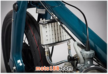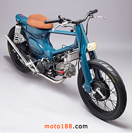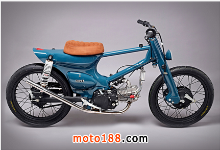 一部以 Honda 超級幼獸(Super Cub)為基礎(chǔ)改裝而成的定制車 “ 鹽罐 ”(Salt Shaker),是來自荷蘭阿姆斯特丹的超級摩托車公司(Super Motor Company)早年之作品。該作品采用了一個 “ 咖啡賽車 ” 的造型,鄧立普的高性能賽車級的輪胎,完全拆除了儀表板。而原廠的 Honda 發(fā)動機(jī)被完全棄用,取而代之的是來自中國銀翔的、最大馬力輸出達(dá)到 22 匹(經(jīng)改裝之后的數(shù)字)的 150 cc 臥式發(fā)動機(jī)。