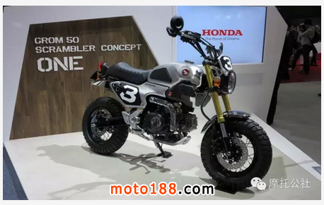 在2015日本東京車展上,本田自己也玩起了猴子改裝,展出了三個GROM改裝版本:兩款由GROM 50為基礎開發的越野風格SCRAMBLER Concept One、Concept Two,一款由GROM 125開發的賽車風格車輛。據了解,這三款車將于明年面世。
