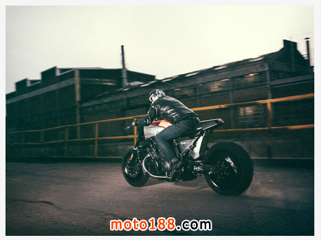“ 紅外線 ” 采用了一個 Cafe 直線加速賽車的外觀造型,原有的 VMAX 外觀風格已經幾乎消失。車身的圖案,使用了 1985 年 Yamaha GP 車隊的配色。主要的改裝,則包括了以精湛工藝全人手制作而成的鋁合金副車架;精雕細琢之下的油箱安裝設計,讓大幅改動之后的 “ 紅外線 ” 依然維持了標準車原有的油箱容量以及乘坐體驗;鋁制外殼的車身兩側空氣濾清器;定制的 Termignoni 四出一排汽系統;多處的碳纖維組件等等。