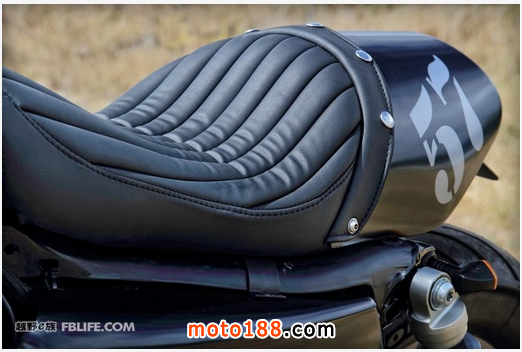 座椅是重新使用硬泡沫手工雕出來的,給人的第一感覺是騎馬的鞍子,這也增強了整車的咖啡復古感覺。在車尾,技師專門從新設計了尾燈,非常個性。