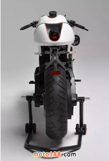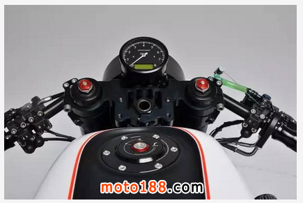 這是一輛2008年的Buell XB12SS,改裝Cafe Racer風(fēng)格,整體顏色采用黑白配,顯得十分干凈。由于布爾摩托車(chē)的短軸距設(shè)計(jì),這輛改裝的Cafe Racer看起來(lái)有些怪異,個(gè)人感覺(jué)風(fēng)格有點(diǎn)像國(guó)內(nèi)的小牛電動(dòng)車(chē)。不僅外觀上有變化,重新調(diào)校了ECU是,功率提升了10匹,而改裝又讓這款車(chē)減重了20kg,性能方面也發(fā)到了提升。而一些細(xì)節(jié)同樣保持了整車(chē)“干凈”的改裝風(fēng)格,比如運(yùn)用了無(wú)鑰匙啟動(dòng)。