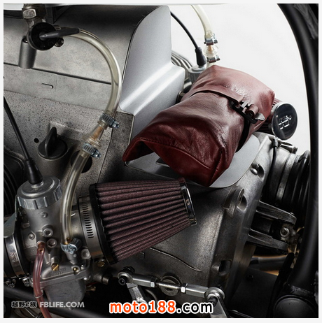 Chad Hodge選擇了一款1978年的BMW R100。而之前的車主肯定也是不間斷的改裝這款車,活塞被改成面向車后面,限流閥調換到車的兩邊,接線則是一團糟。但是憑借其精準的拆卸以及高水平的重組、接線,這款車又復活了,并且亮點包括全新的日本Mikuni化油器套裝和Engineering消音器等。