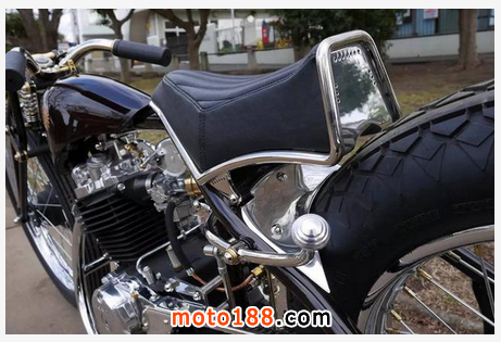 這輛車改裝的十分徹底,重新設(shè)計(jì)的車架和懸掛系統(tǒng),降低了整車的高度,改變了騎行姿勢(shì)。重新設(shè)計(jì)的排氣管也保持了細(xì)長(zhǎng)的風(fēng)格特點(diǎn),起到點(diǎn)綴的作用。