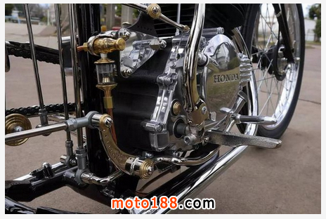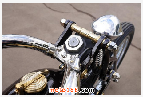 創(chuàng)新還不至于黃銅元素,這輛車的操作改裝也是一大亮點(diǎn),為了符合整體的風(fēng)格,設(shè)計(jì)師把車把簡(jiǎn)化到了極致,油門線暗藏在了車把內(nèi),前剎車和后剎車一并設(shè)計(jì)在了右腳,而離合器被設(shè)計(jì)在了左腳,擋桿更是別出心裁的被設(shè)計(jì)在了車座下面。當(dāng)然,這樣設(shè)計(jì)是否有利于駕駛還值得商榷,但作為一款改裝車來說,整車的設(shè)計(jì)十分精美,可能騎著并不舒服,但每當(dāng)你看到它靜靜地停在那時(shí),相信就會(huì)有一種舒適和喜悅油然而生了。