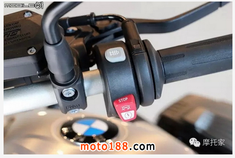 做為選配的發絲紋油箱烤漆是這次最大的賣點,而且發絲紋還具有兩種版本可供選配,不過這次只有拍到一種版本,稍微有些可惜;底下的 nineT 也是這款車最好識別的特征之一。