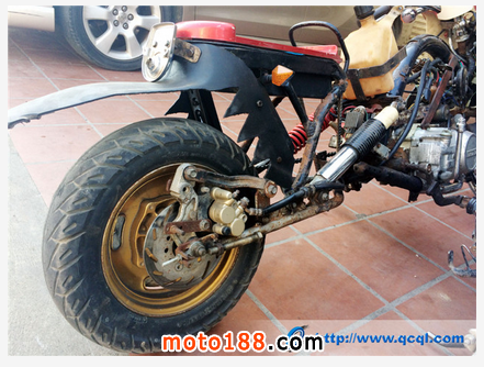 核心提示: 一部來自街頭的作品,搭載了一副 Honda Cub 50 的臥式發動機,踏板車/迷你車的 10 英寸前、后車輪,前鼓后碟的制動系統,渦輪