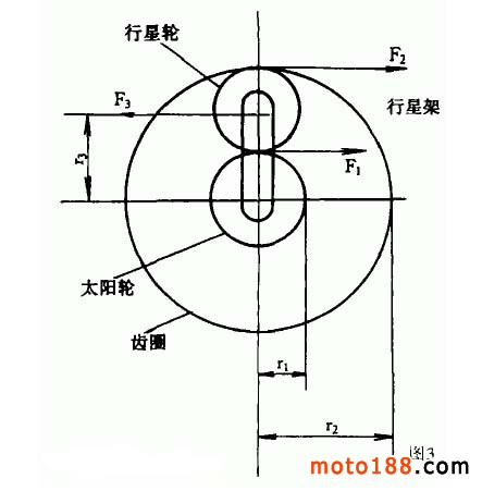 M 3 = F 3 r 3 ( r 1 r 2 分別為太陽輪和齒圈節圓上的半徑)