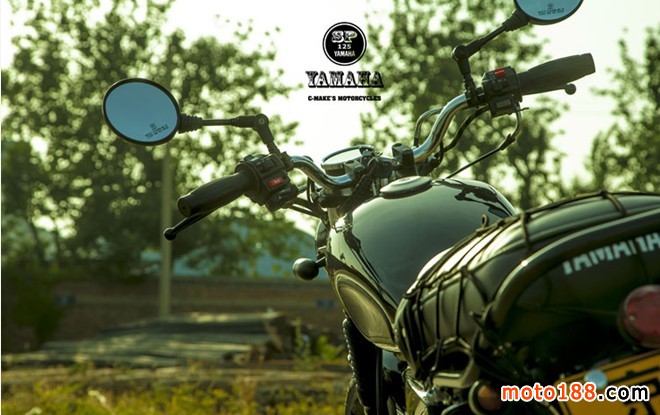 換成SR250油箱,調整了自制的小鏈邊蓋,更換車把和車把開關,