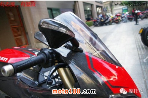 光鏡也是碳纖維,并且集成LED轉(zhuǎn)向燈,頭罩的圖案與WSBK車頭圖案類似。