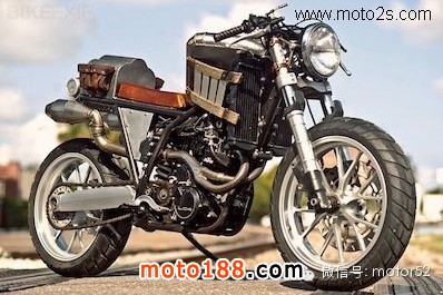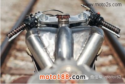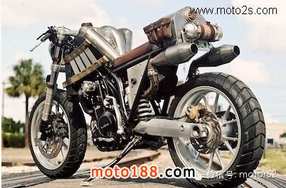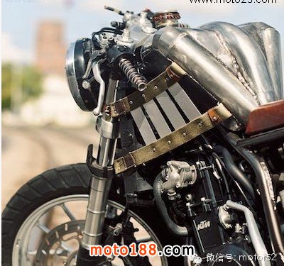 這臺2000年的KTM 640 Adventure 在Florida(弗羅里達)的一對夫妻手下變成了這等“怪”模樣。為了整體降低它的車身,更換了凱旋 Daytona前叉,及KTM DUKE的后搖臂。副車架被修改,整體成為一體車架。座椅/尾燈/后排氣都由女主人獨立完成。油箱由男主人負責全手工敲出來的,本想下一步就該做漆了,后來夫妻二人一致發現原來這種原始的美正好和KTM的原始野性相輔相成,并形成了今天展示在你面前的這一杰作。
