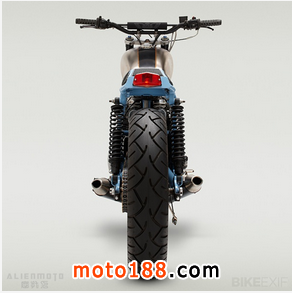 特別值得一提的是,為了和P.K. Ripper的風格保持一致,XS650原車的輻條輪轂被更換為和自行車輪轂造型類似的“板輪”(Metzeler ME880前130/80-17, 后140/90-16)。此外,腳啟動桿的設計也絕對是點睛之筆。來自BMX自行車上的腳踏板完美的變身為“打火棍”。銀色的腳踏板和車身融合的恰當好處,完全沒有違和感。