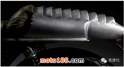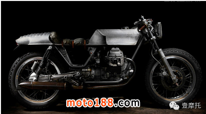 CAFE RACER DREAMS:是的這家來自西班牙的改裝廠就是這個名,但是卻帶著這輛v7走向了scrambler 風格,短小的精悍的車身,噴砂的輪轂亞光處理搭配豆胎,將電池盒移到了搖臂下,去掉邊板露出k&n空濾,排氣也針對大流量空濾定制,去掉了cafe的經典元素座包后改裝了后段車架換上平座,看起來是不是也別有一番風味?