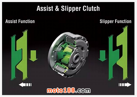 通常安裝在比賽用車和大型車上的輔助&滑動式離合器正式安裝在了250cc級的車輛上,這是川崎摩托的創舉!