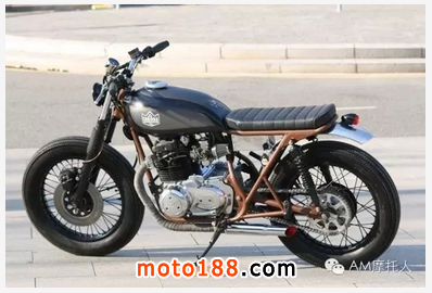 那些想要搞一臺Street Tracker的人,自己通常會從一個現(xiàn)成的的摩托車(如XS650)進行改裝。想要打造這一風格,需要幾個基本要素。首先必須要有一個寬把去使得 Tracker能有更好的轉向操作;接下來是小油箱,許多Street Tracker是模仿最經(jīng)典的Flat Tracker車型XR750(哈雷戴維森XR750最原始的FLAT TRACK RACE賽車之一)。定制油箱的兩側朝著的賽車座椅處會逐漸變窄(也就是我們國內常說的細長水滴油箱),形成一個完美的曲線;此外,超短小的僅僅只放得下 尾燈的擋泥板也是必不可少的。一個好看的Street Tracker還必然需要有一個19寸的電鍍鋼絲圈。最后,你可以做一個運動編號牌以及一些交叉的防撞桿,當然還有拉花。