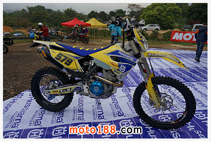 在2015 DirtBike 山狗越野同樂日中,騎士自家店的負責人阿朗以改裝的2015 HUSQVARNA FE350出戰,享受同樂日越野狂歡的樂趣。