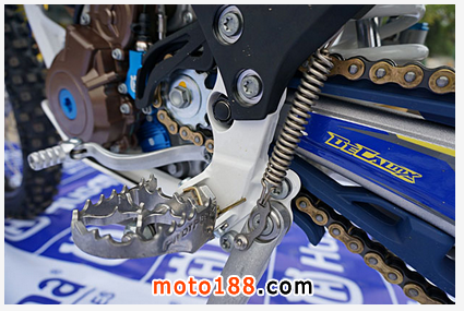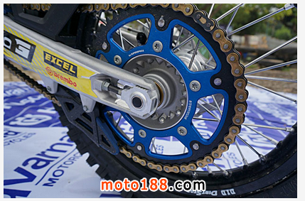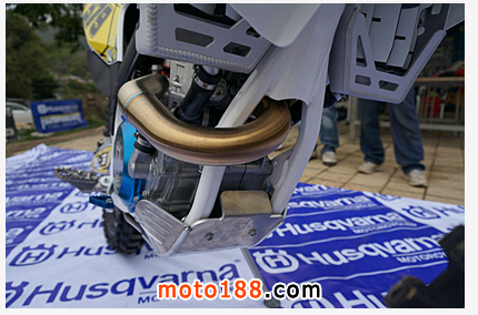 今次的改裝,除了令引擎有更佳輸出的FMF鈦合金排氣喉外,大多集中在更佳的控制、輕 量化、強化保護及美觀的部件。如配上大量HUSQVARNA同廠的Husky Power強化與美觀的改裝部件、SCOTTS中置釘把、TU Bliss可低氣壓防脫的內胎、更佳起動更輕量的Antigravity鋰電池及Bridgestone X30R Battlecross MX motocross 輪胎。當然,最吸眼的莫過於車身度身訂造黃色自定圖案的車身貼紙。