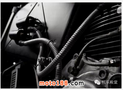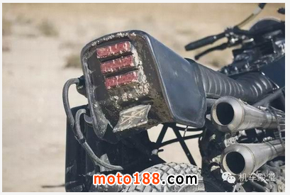 金屬置地的儀表盤(pán)放置在油箱上部,這一點(diǎn)和B組的拉力車很相似。方便讀取溫度,油壓,速度,轉(zhuǎn)速和電壓。線路都包裹在機(jī)身周圍,猶如金蛇纏繞。