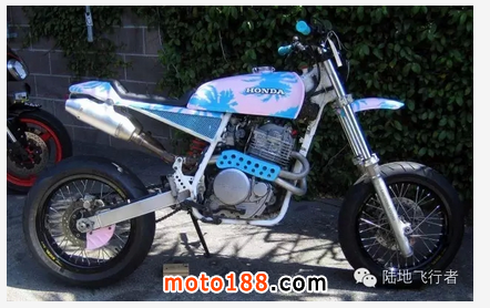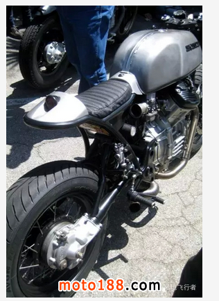 Deardorrff原來的定制計(jì)劃是改裝前叉和車座部分,但后來計(jì)劃變得越來越瘋狂!為了能夠容納一個(gè)取自2008 款CBR600RR的后減震,喬什對油箱和油箱蓋和前叉部分都進(jìn)行了重新設(shè)計(jì),成了現(xiàn)在大家看到的這個(gè)咖啡賽車的樣式。這輛摩托的前懸架是從本田CBR600RR改造而來。前輪轂是來自本田CB750,后輪轂則是來自本田金翼GL1000 。