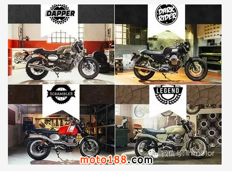 MOTO GUZZI推薦四種改裝風(fēng)格,這四種風(fēng)格獨(dú)特的V7改裝套件,都將讓V7成為焦點(diǎn)。MOTO GUZZI的所有配件均可任意搭配組合,單獨(dú)購(gòu)買,滿足車主最瘋狂的想象力與創(chuàng)造力。