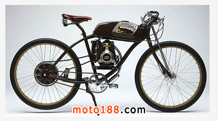 Derringer Cycles復古式摩托車外形與老式自行車很相似,只是設計師在自行車真皮手工車座和把手之間的橫梁上裝有油箱,下方配備一臺本田(Honda)49CC四沖程汽油發動機,另外,配有70毫米的鼓式剎車前輪還附帶了避震器,后輪同樣也設有倒輪閘式剎車。該車后輪左右兩邊各有一個飛輪,由兩組鏈條與腳踏板和發動機的牙盤相連,既可以像普通自行車一樣騎行,也能像摩托車一樣騎行。售價3,500美元,提供定制服務,擁有近250種靚麗色彩搭配選擇。