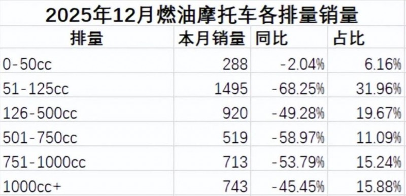 2025年12月英國摩托車銷量4876輛(包括燃油和電動摩托車),環比下降7.02%,同比減少56.49%。本月燃油摩托車總銷量4678輛,同比減少57.42%;電動摩托車總銷量為198輛,同比降低9.59%。